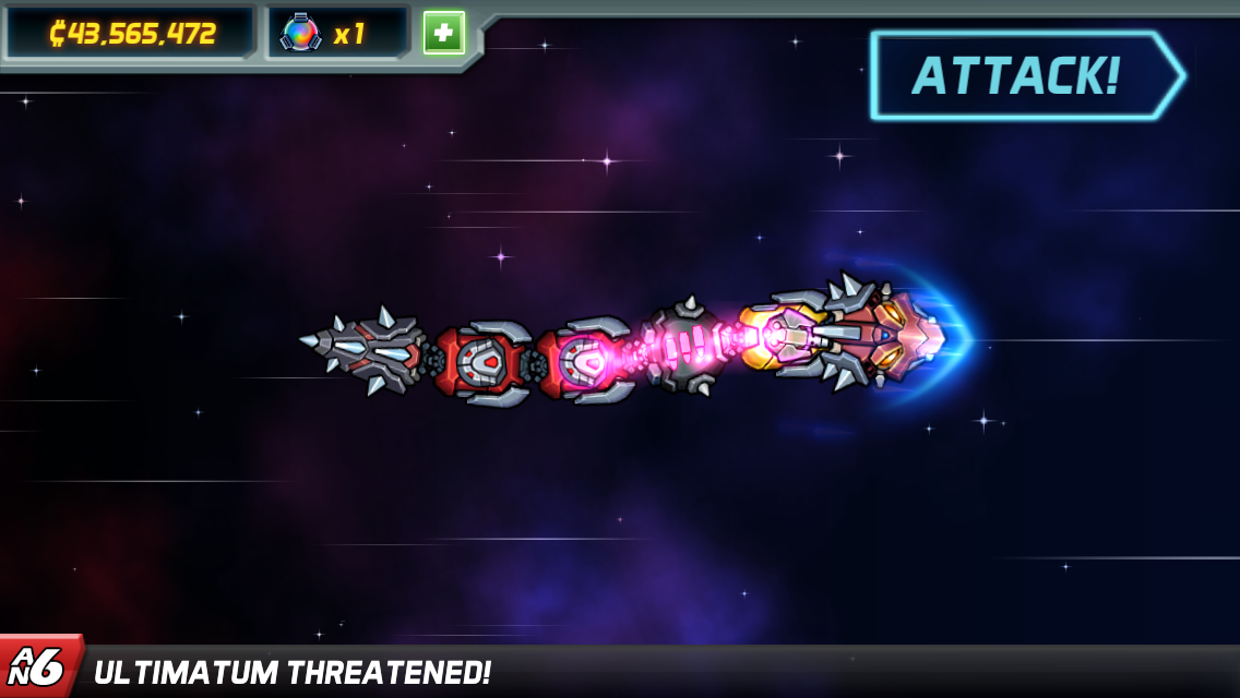 It’s really a “match three” game. Colored segments appear and you pull them into Colossatron. Put three red ones together and they merge into a bigger red segment. Put three of the bigger ones in a row and boom, it gets even stronger.