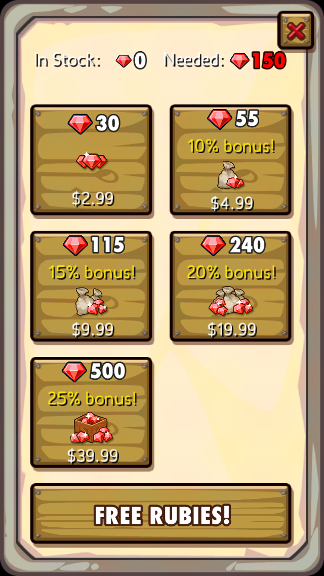 Make the currency available in-game. Even if it’s rare, you should be able to get the currency without having to buy it. Pocket Mine is as close as you can get to a Pay-to-Play game without requiring you to pay to play. I’m level 39 and I haven’t spent a penny on it.