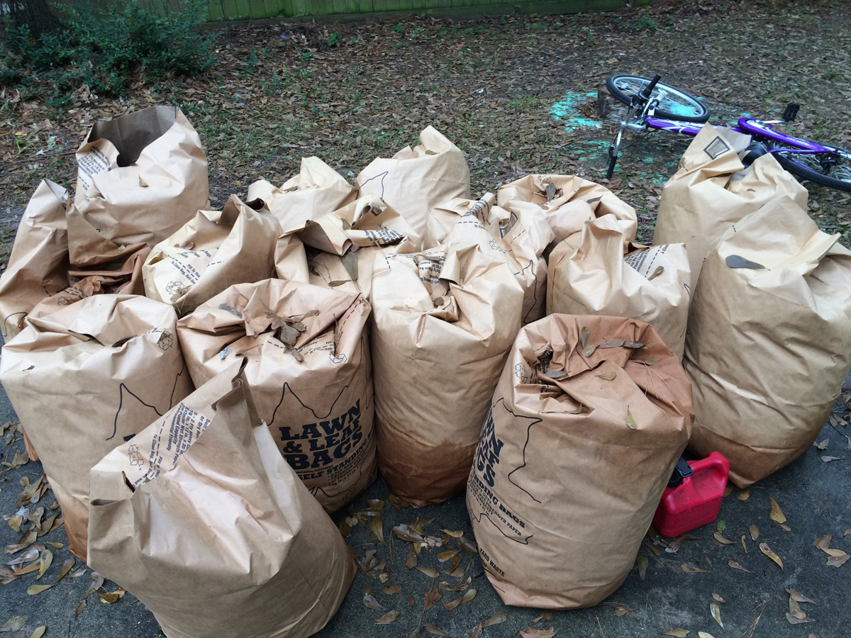 We pack up the gear with the speed of a professional pit crew and are quickly on our way home. There’s drama over how many bags of leaf Micki gathered in the back yard. Honestly, the only indication of raking are the full bags of leafs, beyond that it is tough to tell any yard work has been done. Micki claims 17 bags of leaves. Marie says she only bought 10 bags, so 17 is just out of the question. I have a photo on my phone of the backyard. In the photo you can make out about 12 distinct bags for sure, but it’s far from conclusive evidence.