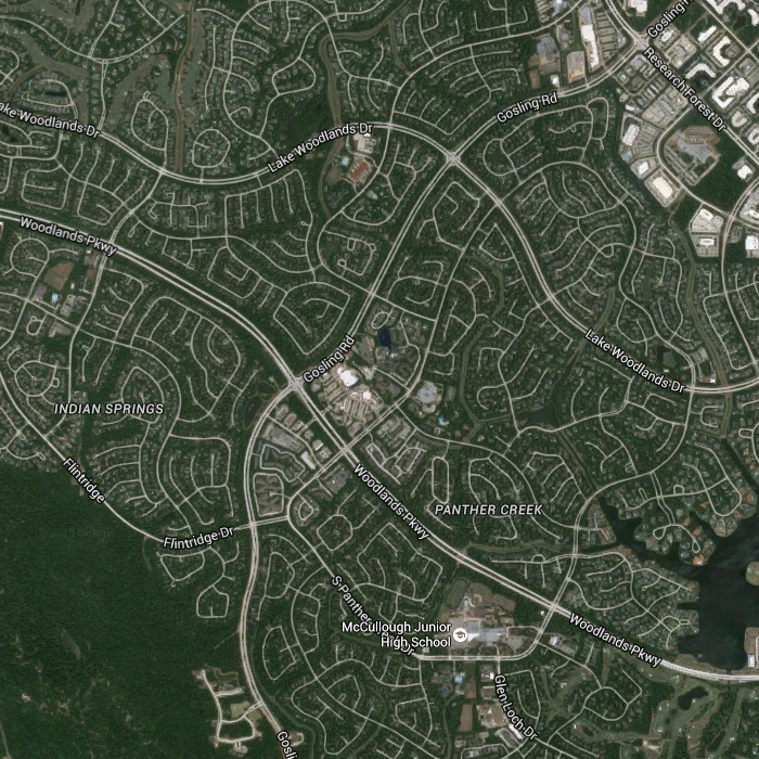 The streets have names like Wandering Oak Dr., Tangle Brush Dr., and Hickorybark Dr. There’s also Panther Creek Dr., but I don’t think Texas has any Panthers, unless a Carolina sportsing team is in town. They have something against straight streets, especially in residential neighborhoods, which seem to be small clusters of houses lined by trees on the outside and accessed by roaming loops of road. A satellites view actually makes me think it might make for a neat coloring book.