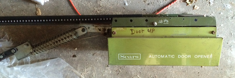 The old garage door opener was a product of the '50s. This was evident from its drab olive green color and the Sears branding along the back. Sears lost its relevancy around the same time as the color olive green did and neither of these things have been used to celebrate "x-garage-door-mas" in decades.