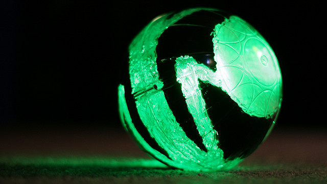 I found a black caulk in the auto department of Walmart, which is what I used for the opaque sections of the ball.