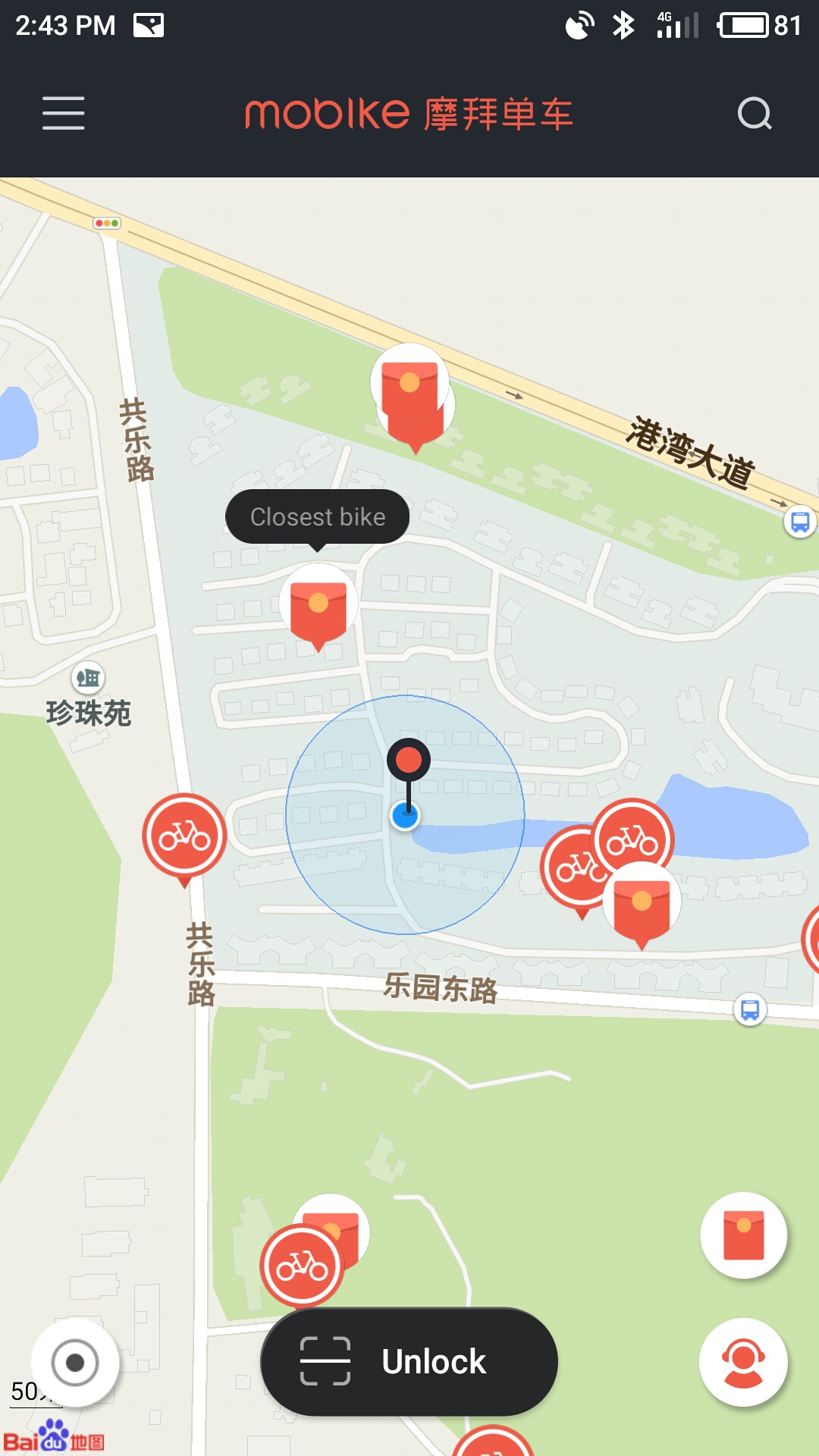 As the bike-sharing industry has become more competitive in the last couple months Mobike has begun to list some bikes as "red packet" bikes. These bikes are free for the first 2 hours of use and if you ride for more than 10 minutes you have a chance to win up to ¥5000.