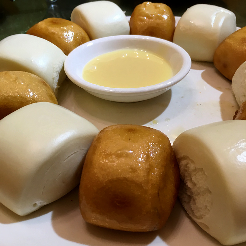(Above) Bread rolls with sweet and condensed milk as a dipping sauce. Very delicious.