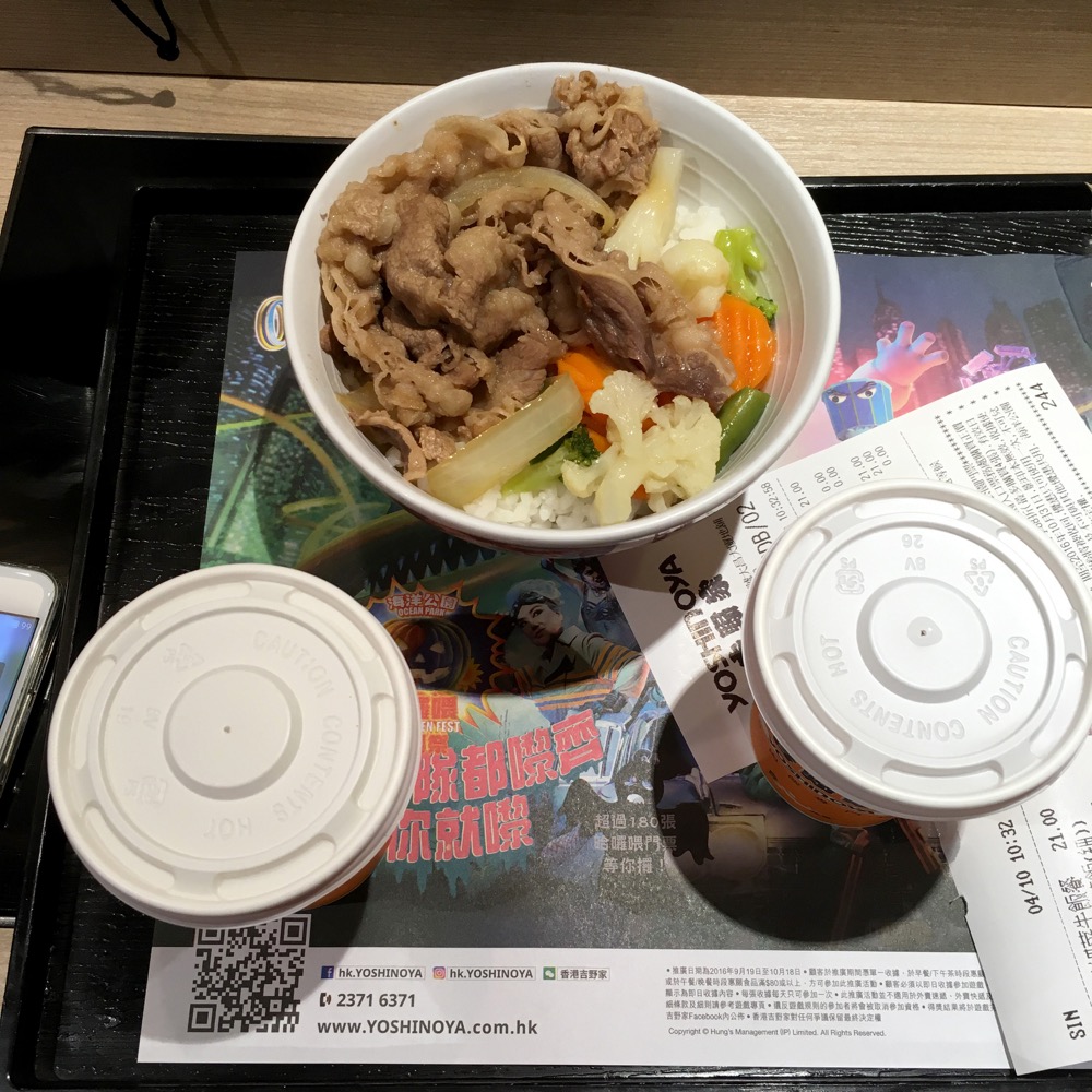Yoshinoya is a Japanese fast food chain. They serve gyūdon (beef bowls) and the food is tasty and cheap. It was probably the cheapest meal we ate. I'm mainly including it here to help demonstrate the variety of foods we were able to sample.