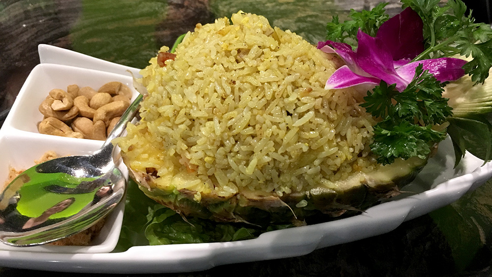 Paging through the menu I saw seafood fried rice served in a pineapple. I'm not a huge fan of seafood, but I couldn't pass it up. "There was a really cool dish and they served it in a pineapple, but I didn't order it..." #lametravelstories