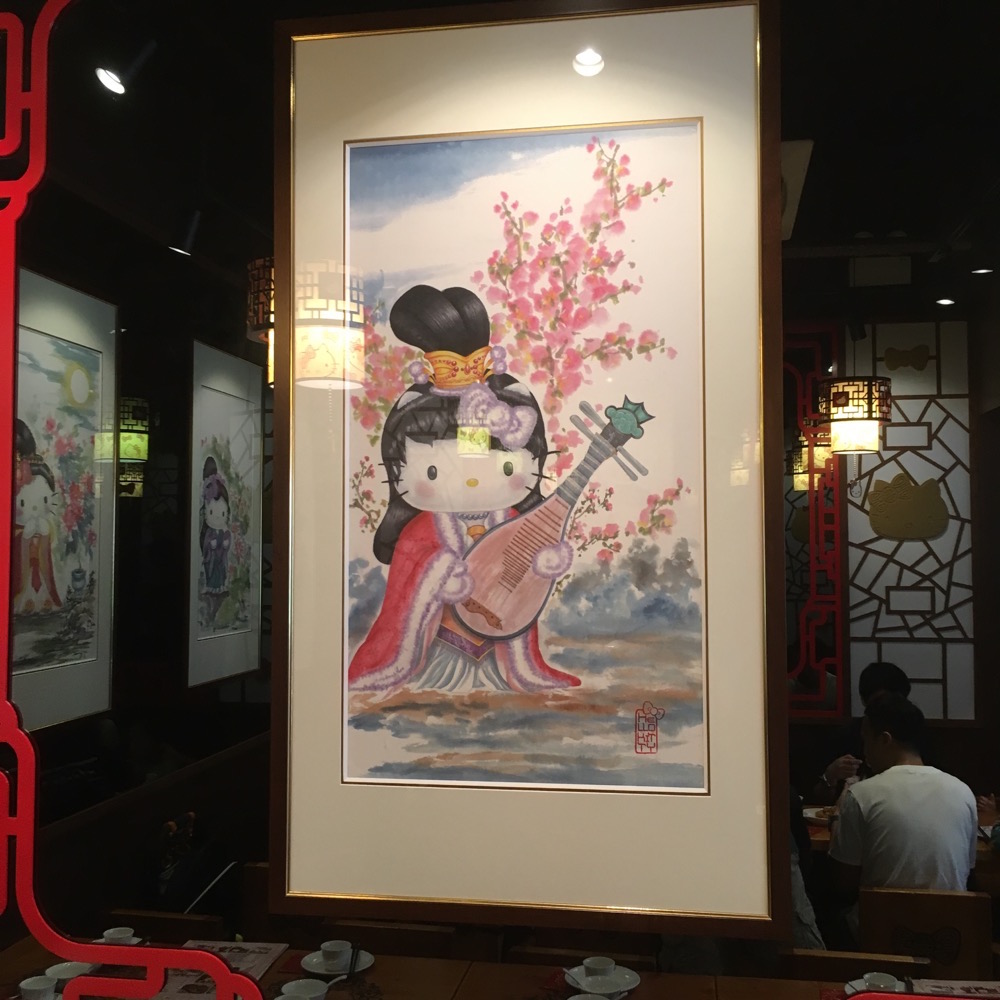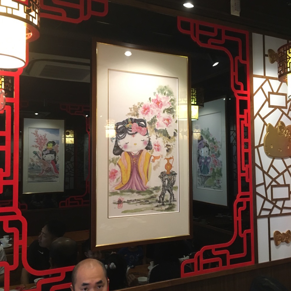 Sunday morning we go out for dim sum. There's a Hello Kitty restaurant not too far away, maybe half an hour walk at most.