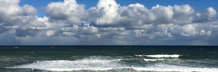 We walk further down the shore. Huge waves crash over the wave breakers and cement tetrapods. Luke is unsuccessful in catching fish, the water is likely too rough. I capture many photos and a handful of pokemon. Our path back takes us up a hill with a nice view of the ocean. Again it feels like we're in the eye of the storm, clouds to the east and west appear formidable.