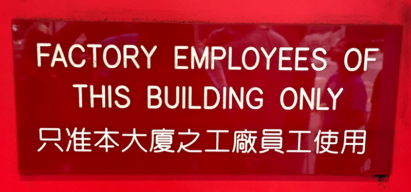 The McDonald's is a short walk away. There are no markings on the outside of the building. There's no windows. There's a red wall with an inset door. A sign on the door reads "Factory Employees Of This Building Only." It's like a special secret club fast food restaurant.