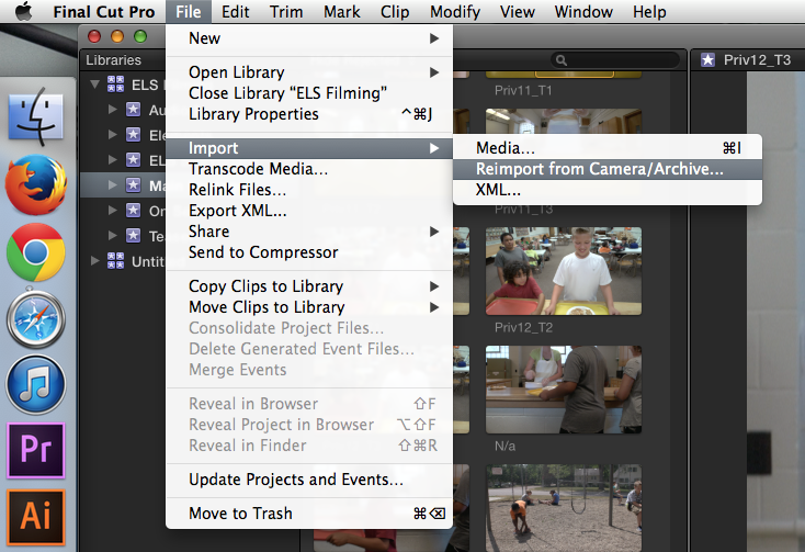 Select the camera clips from your event/bin and choose the option from the drop down. (If you select an event and not a clip, it doesn’t seem to work. Make sure you select a clip before you choose reimport.)