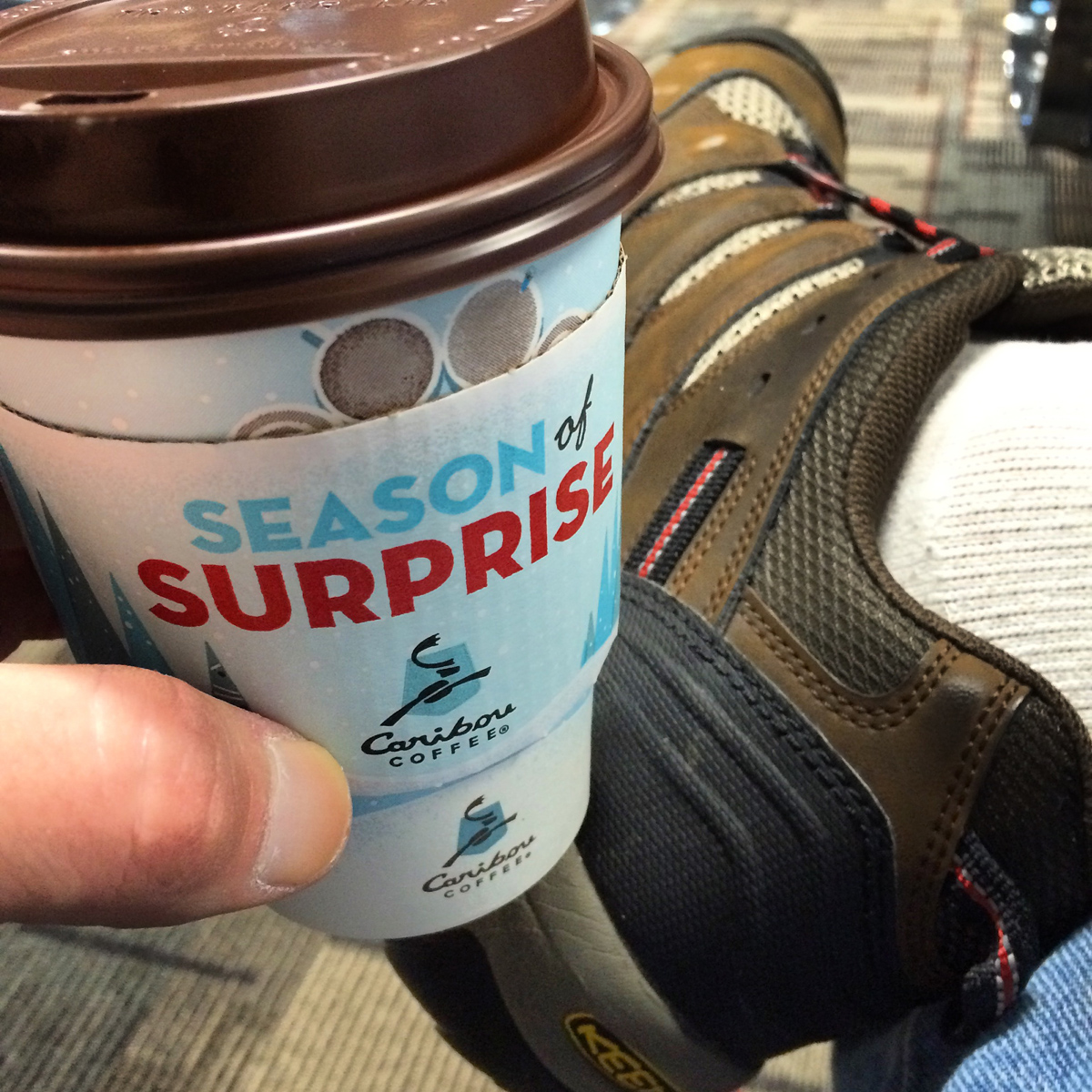 I finish my loop without much fan fair, there’s no finish line or cheering committee. It’s a little disappointing. Back at gate E5 I find a seat and shed my extra fleece layer. It’s 6pm so I still have some time before boarding and someone had the gall to place a Caribou Coffee store right across the hall. It’s too late for caffeine, but…