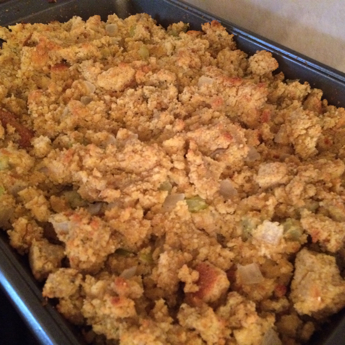 We take the pies to the kitchen where I meet the rest of my cousins. The small dining room table contains a large tray of sliced red and green peppers with dip and a tray of crackers and cheese. Let the snacking commence.