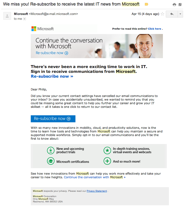In the past two months I have even begun to receive emails from companies trying to remind me that I unsubscribed from their email notifications… I kid you not.