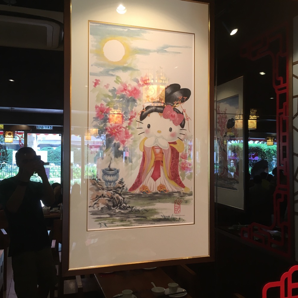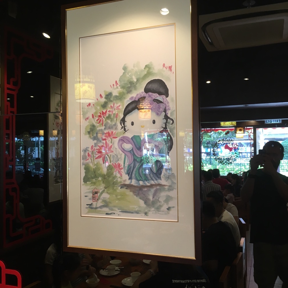 Sunday morning we go out for dim sum. There's a Hello Kitty restaurant not too far away, maybe half an hour walk at most.