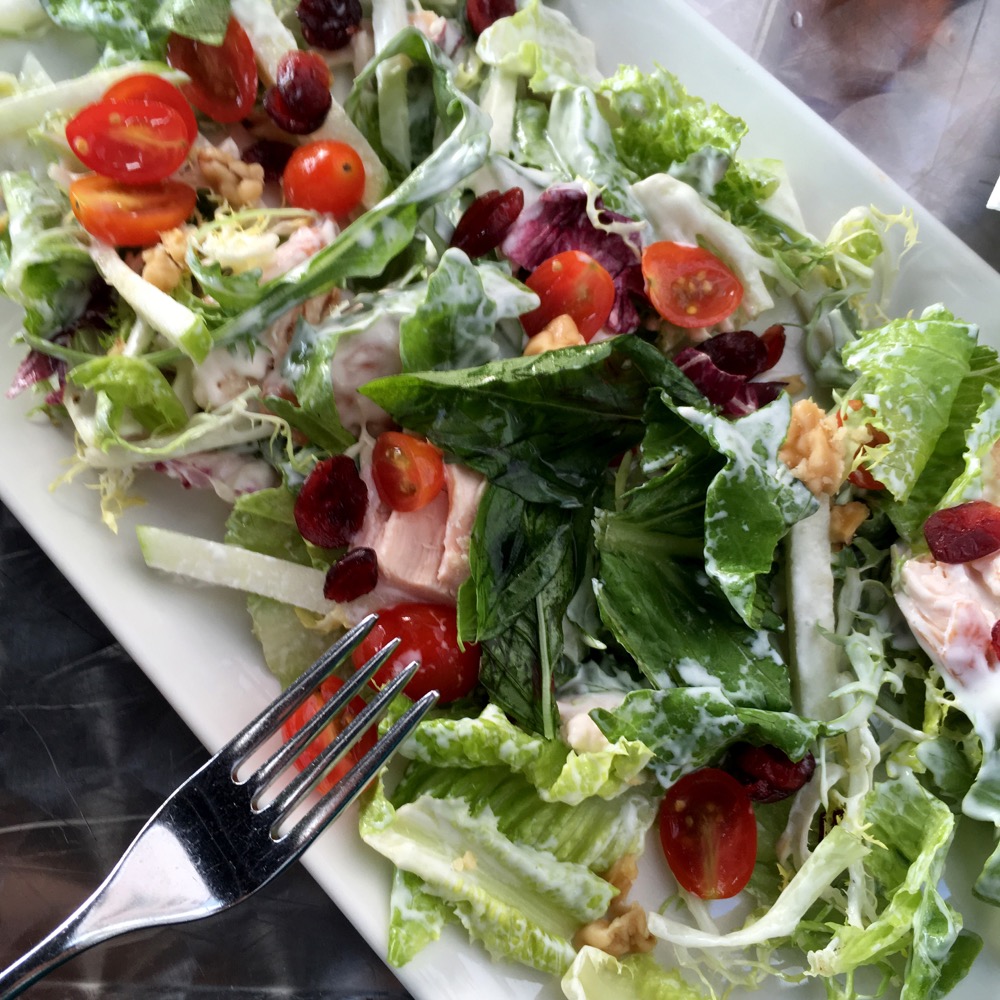 An Italian restaurant called Pizza Express is where we stop for dinner. The menu and the prices are much more elegant than the eatery's name. They have apple cider from Australia. The salad descriptions sound excellent, especially in the hot weather, but so do the pizzas. I order a chicken salad. Besides lettuce it also contains cherry tomatoes, crushed walnuts, and dried cranberries. It's dressed with a delicious sauce.