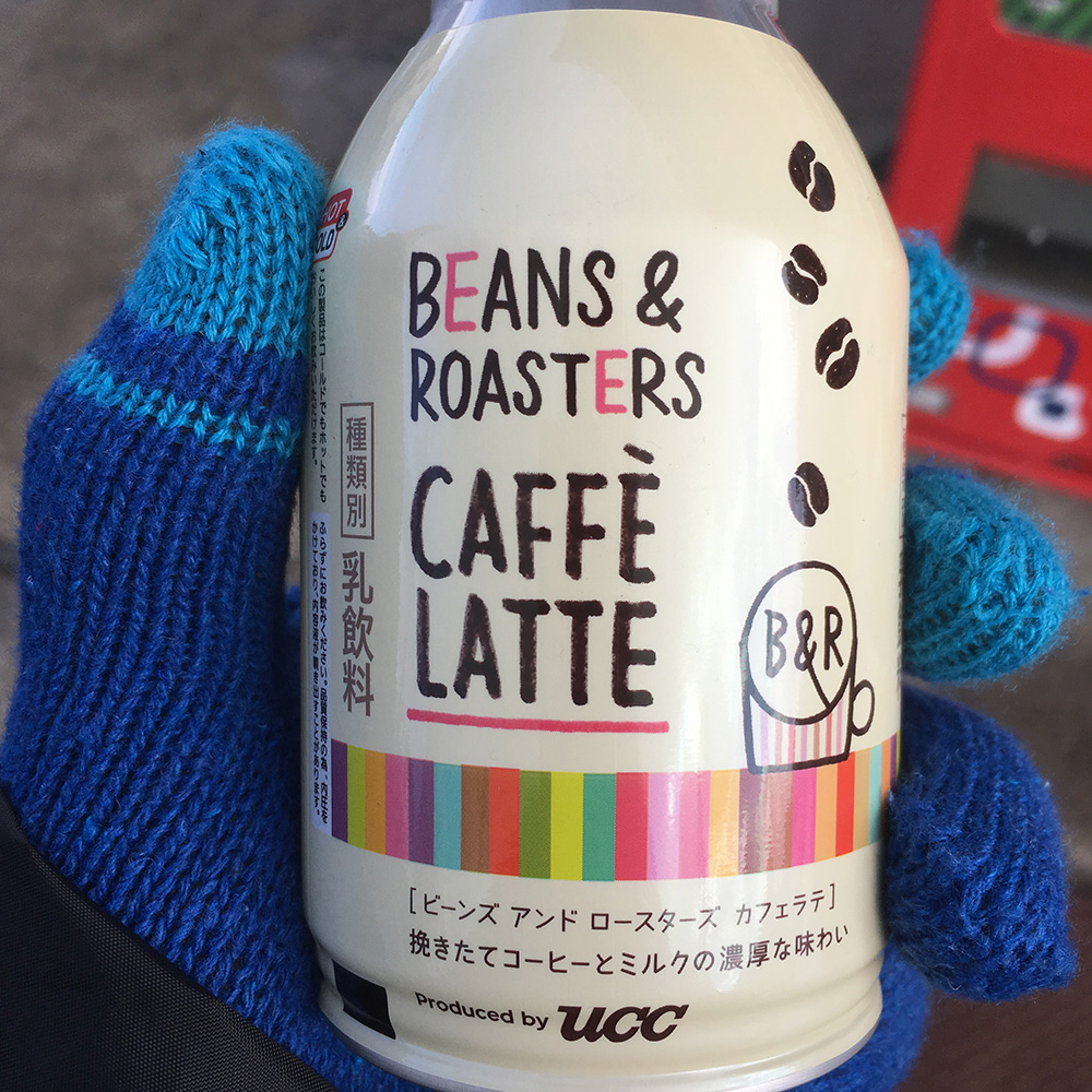 On the way back we stop at a vending machine so I can get hot coffee again.